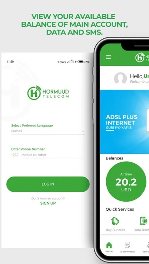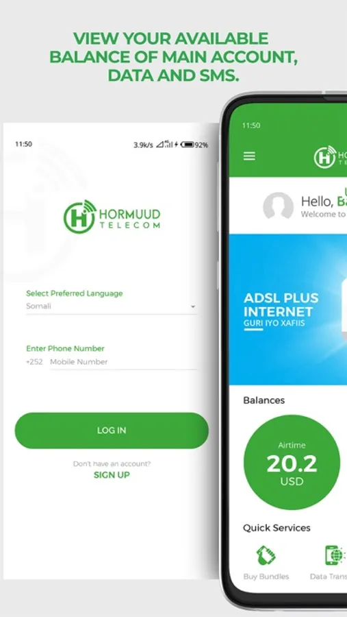 Hormuud Telecom App is available in English and Somali, for all our customers and it's free to use. You can manage your Hormuud Sim card through the app directly. Enjoy!