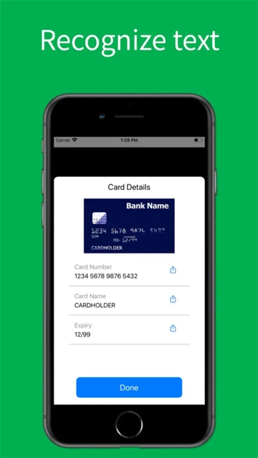 Card Lookup is a native iOS on-device AI based solution that extracts the 16 digit card number, card expiry and card holder's name from the given front side of a credit or debit card. The AI engine uses the cutting edge computer vision framework from Apple along with custom trained CoreML model for precise landmark detection. The system also makes use of the Natural Language framework from Apple for identifying person names . The on-device AI engine ensures data privacy and security.