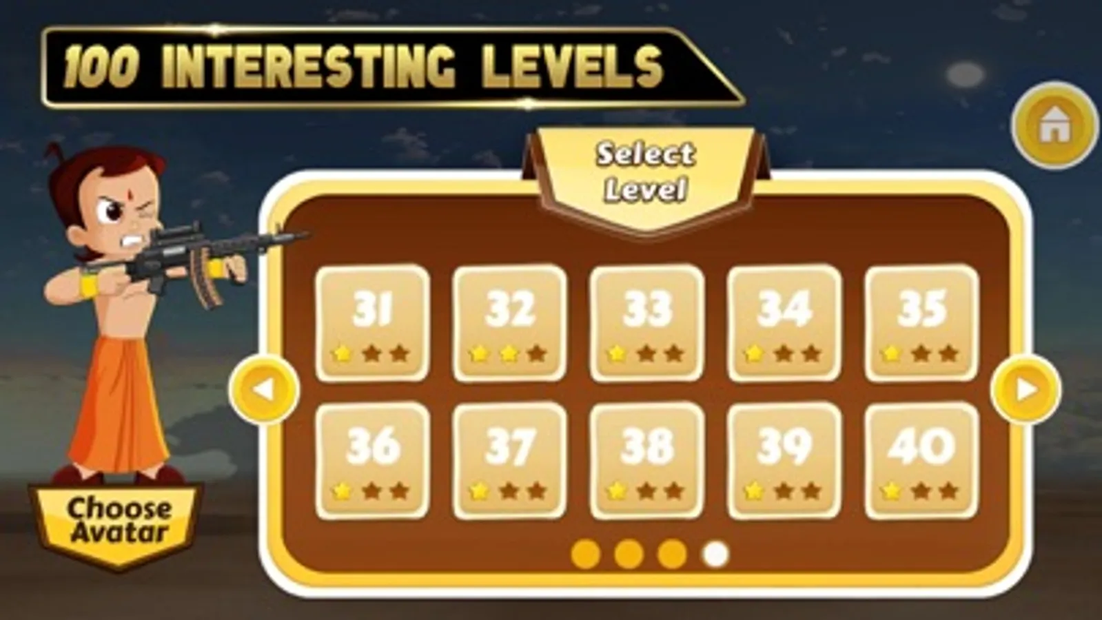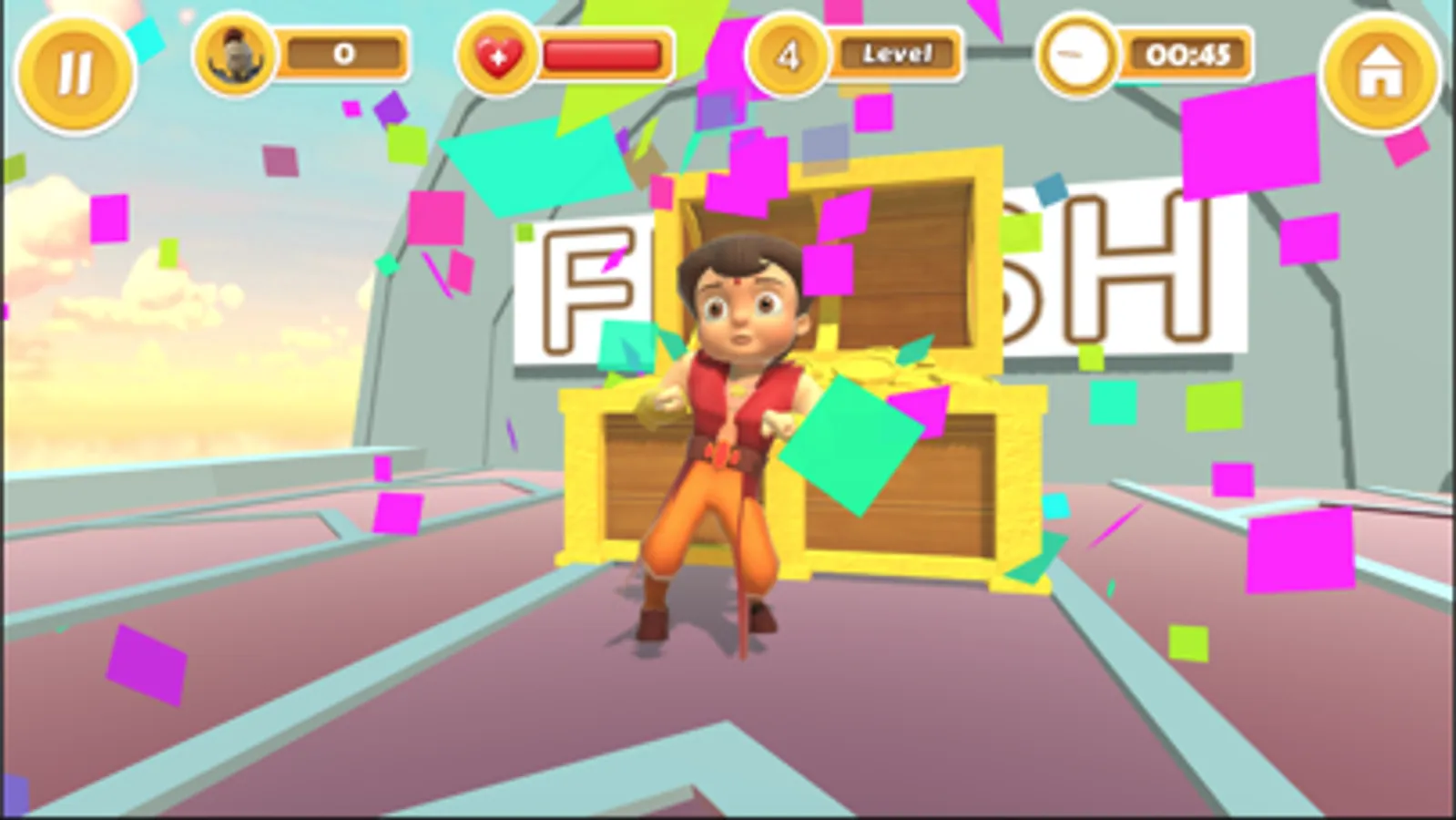 Super Bheem faces many villains who are trying to take him down, he needs to shoot them down and progress to finish line. Currently this game has 100 levels and more will be added soon..