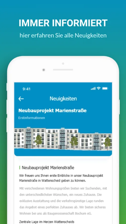 Die neue App der Wohnungsbaugenossenschaft Bochum eG bietet Mitgliedern und Wohnungsinteressent:innen tolle Möglichkeiten.