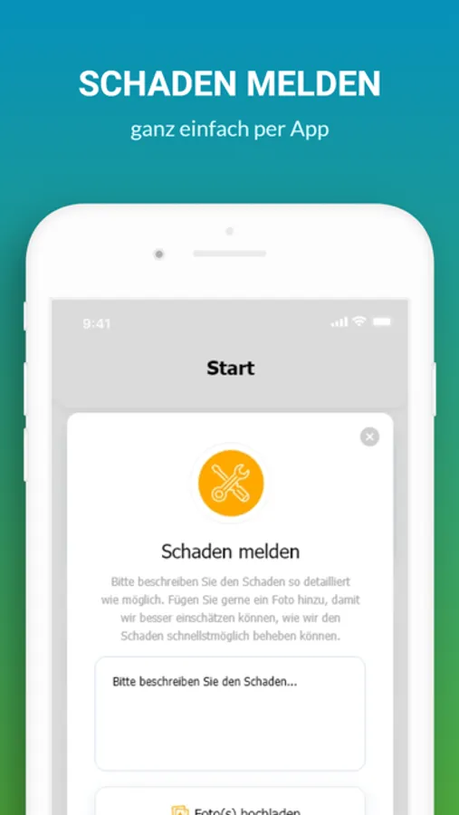 Haben Sie als Mitglied einen Schaden in Ihrem Haus oder der Wohnung zu melden? – Geben Sie eine Schadenmeldung ganz bequem in Text- und Bildform über unsere App auf.
