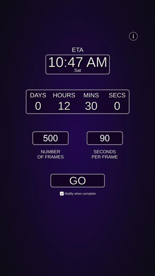 RenderCalc can also notify you when your render should be finished, even when you close the app.