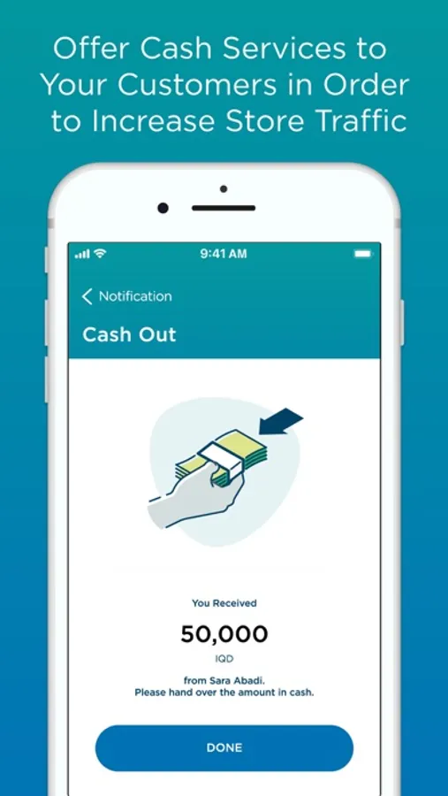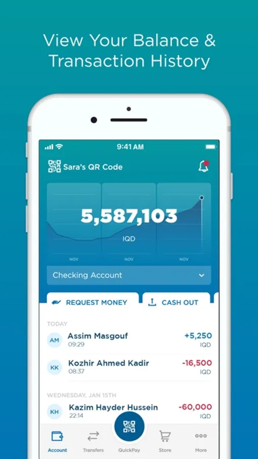 -Withdrawal. Quickly and conveniently withdraw cash using a wide network of merchants all around Iraq. You can do this by simply scanning a QR code provided by the merchant. Your balance will be updated in a matter of seconds.