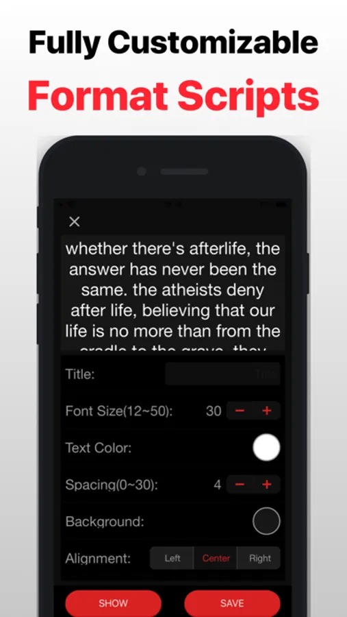 Read your text straight from your phone while recording yourself. Just like a professional teleprompter.