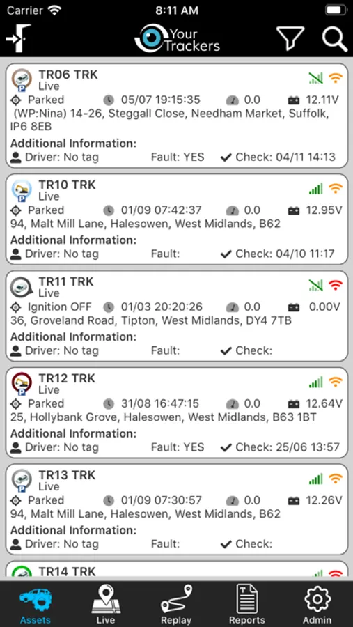 The Your Trackers app allows you to track your vehicles live, on the move.