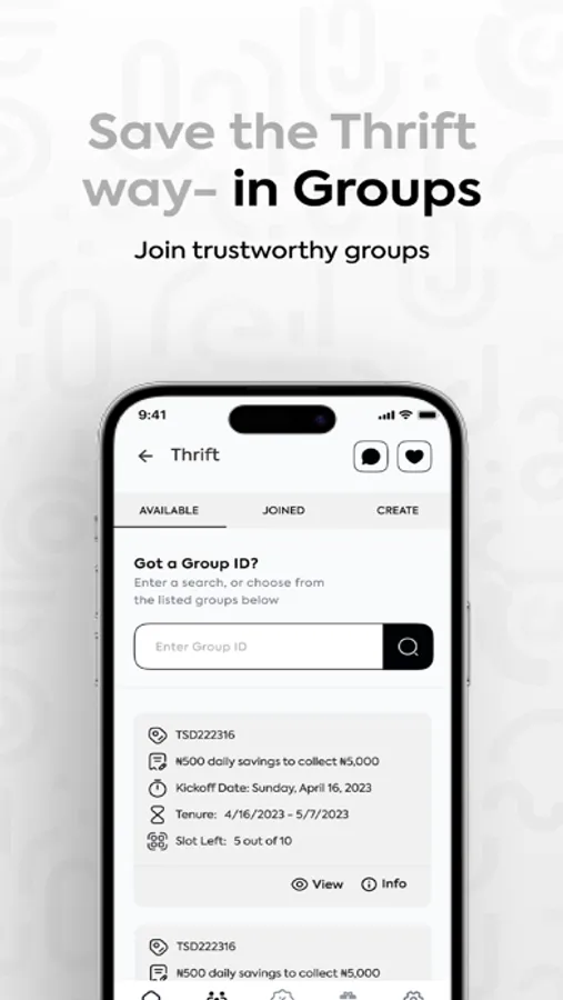 Popularly known as ajo, esusu or adashe in Nigeria; TrueSaver helps you to save with a group of friends and then collect lump savings turn-by-turn in rotation. Collecting early in the cycle is like accessing an interest-free loan while collecting later in the cycle helps you to enforce savings discipline.