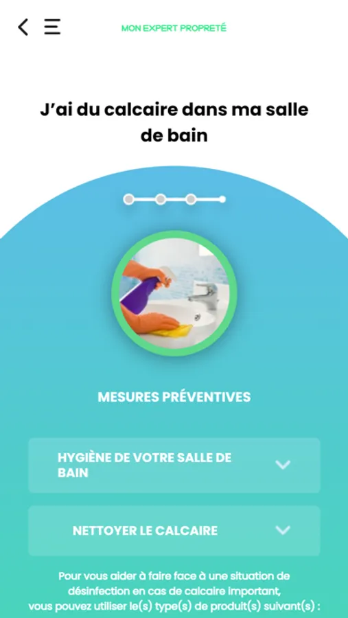 Mon Expert Propreté est une application innovante à visée pédagogique développée par des experts de l’entretien et de l’hygiène pour informer le consommateur sur les bons gestes et les précautions d’emploi à suivre pour une bonne utilisation des produits ménagers.