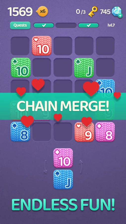 ● Treasure Chests: Open brand new Treasure Chests that come with a satisfying and visually appealing rewards display. Relish the excitement of unveiling valuable prizes and resources, enhancing your card-merging journey.