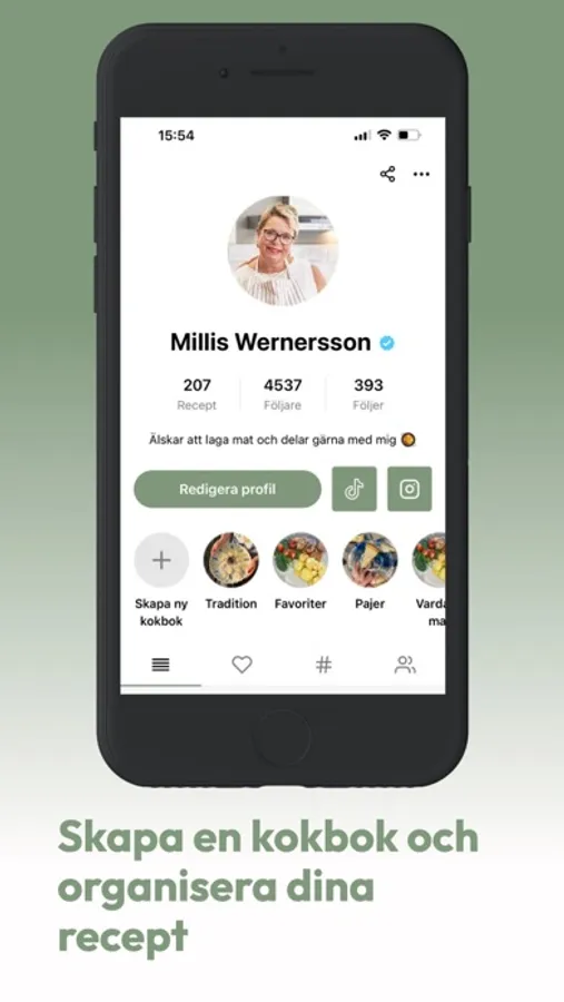 • Följa vänner och matkreatörer från Instagram och TikTok direkt i appen för att få ny matinspiration varje dag.