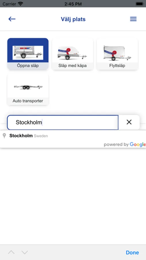 Med OKQ8 Hyrsläp kan du boka och låsa upp din släpvagn direkt i appen.