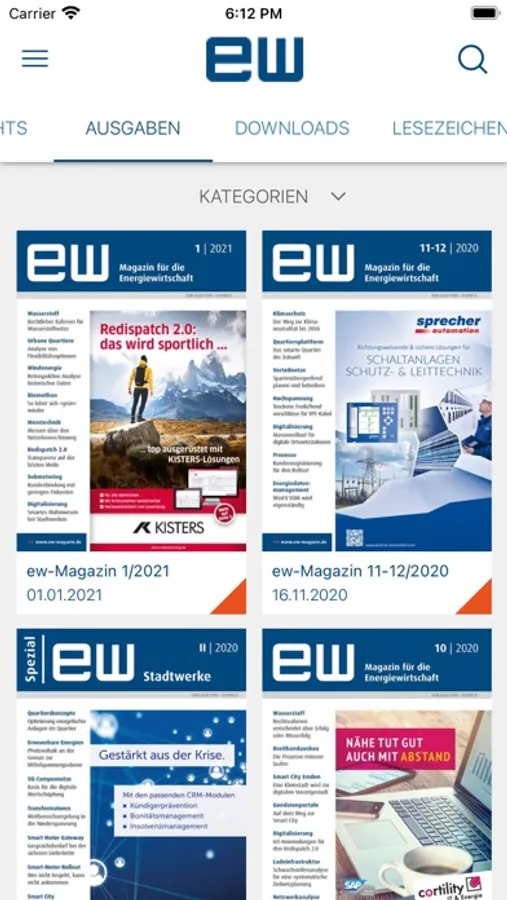 Der Energiefachtitel ew bietet Entscheidern in der Energiewirtschaft vollumfängliche Fachinformationen entlang der Rubriken Politik und Wirtschaft, Mobilität und Stadtentwicklung, Erneuerbare Energien und Erzeugung, Netze und Infrastruktur, Messwesen und Abrechnung sowie Digitalisierung und Prozesse. Das Konzept des traditionsreichsten Fachtitels in der deutschsprachigen Energiewirtschaft stellt diese tiefergehenden Fachinformationen mit technik- und praxisbezogenem Projekthintergrund in Form von Fachbeiträgen, Nachrichten, Interviews, Diskussionen und Produktinformationen bereit. Ebenso Entwicklungs- und Vergleichsstatistiken der öffentlichen Elektrizitätsversorgung, wie Importe und Exporte, die Bruttoerzeugung unterschiedlicher Energiequellen und des Verbrauchs.