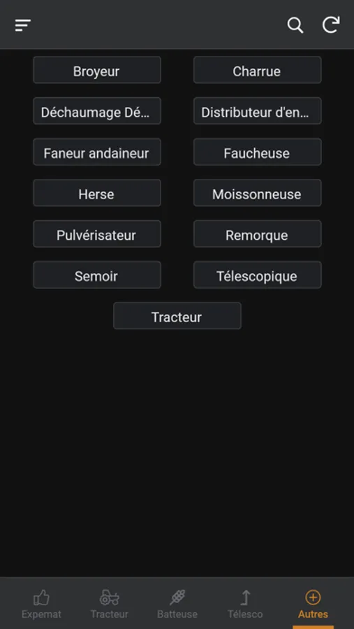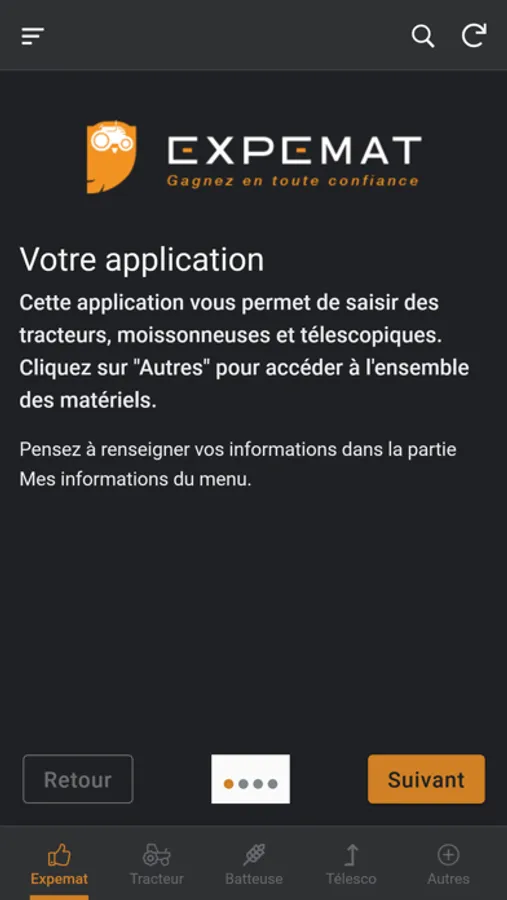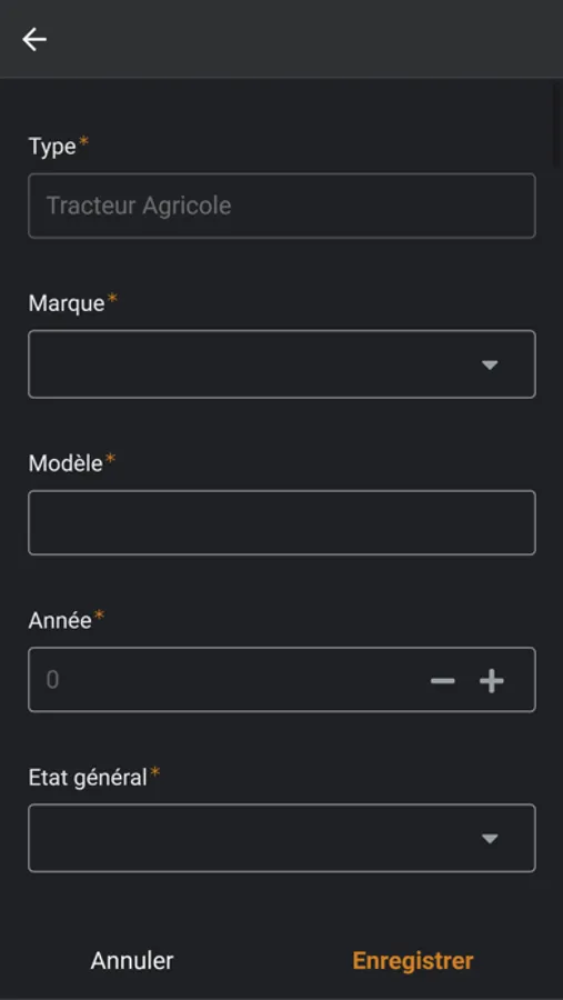 Cette application vous permet de saisir des tracteurs agricoles, moissonneuses batteuses et télescopiques, ainsi qu'une vingtaine d'autres types de matériels.