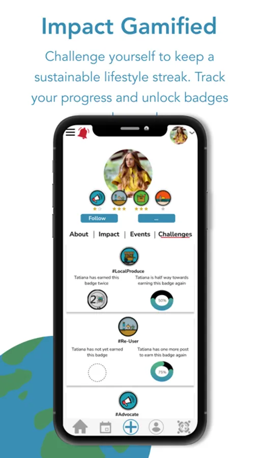 Take effective action for sustainable living in a fun, easy and rewarding way so that doing good feels good. Know exactly how and where you can make a real difference. Access a variety of fun impactful challenges, discover events, campaigns, and projects around you. Post about your sustainable lifestyle! Recycle, buy sustainable products, donate food or clothes to those in need, support good causes, reuse, clean beaches, plant trees and ultimately become a global impact leader!
