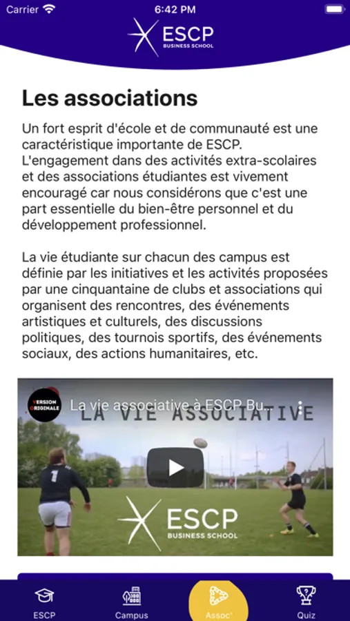 - Des quiz sur les différents programmes de ESCP