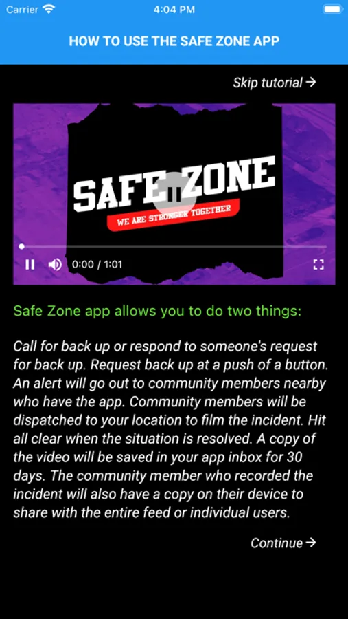 Safe zone gives users the ability to call for help in moments of need.