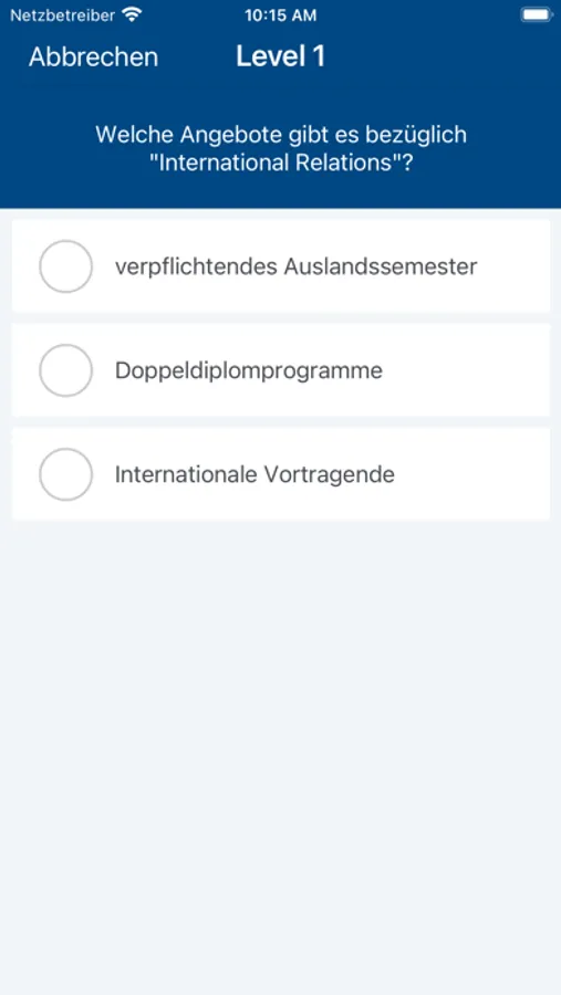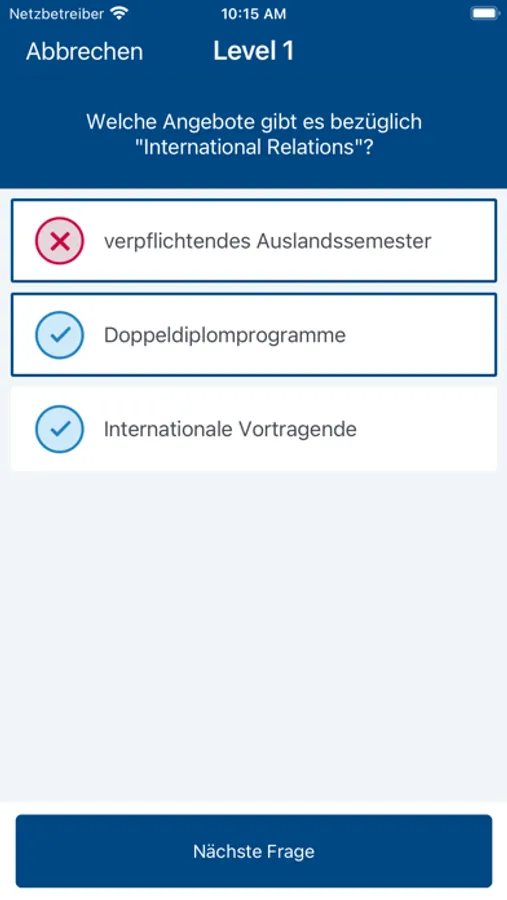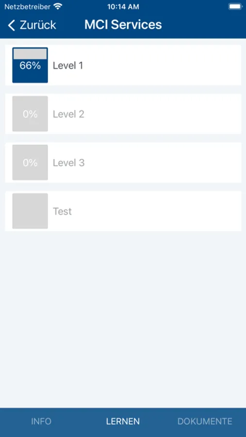 Zusätzlich zum klassischen Lernen wird auch Level-Lernen angeboten. Im Level-Lernen werden die Fragen vom System in drei Levels gegliedert und im Zufallsprinzip abgefragt. Zwischen den einzelnen Levels gibt es eine Verschnaufpause, um den Inhalt bestmöglich zu speichern. Dies ist notwendig, um einen hirngerechten und nachhaltigen Wissenserwerb zu erzielen. Ein Abschlusstest macht den Lernfortschritt sichtbar und zeigt, wo mögliche Defizite liegen und gegebenenfalls noch eine Wiederholung sinnvoll ist.
