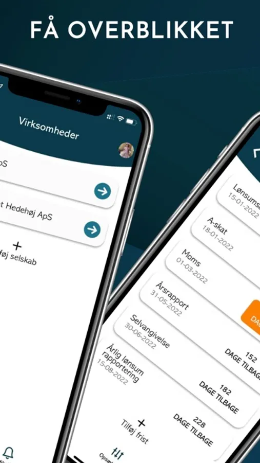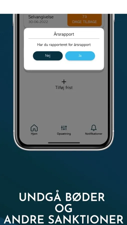 Appen sender dig intelligente notifikationer, så snart en frist nærmer sig, så du altid har god tid til at lave din virksomhedsindberetning. Du vil altid få besked forud for fristens udløb, således at du konstant er opmærksom på, om du er ajour med dine virksomhedsfrister.