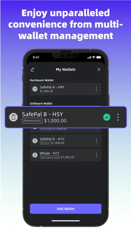 SafePal cryptocurrency wallet application is a secure, decentralized, easy-to-use and free application to manage more than 10,000 cryptocurrencies at your fingertips. With the SafePal application, you can store, send, receive, buy and trade cryptocurrencies at ease, with smooth and intuitive user experience!