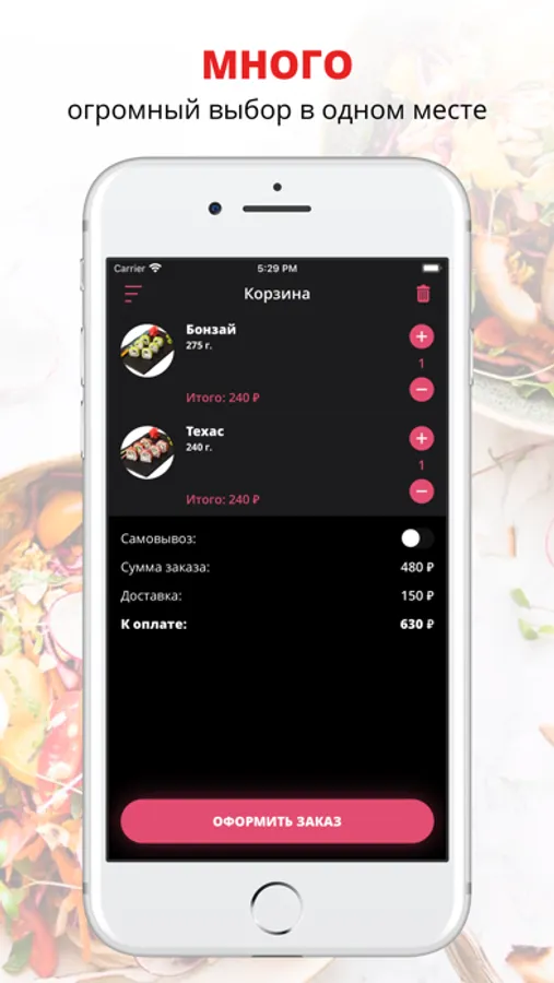 Заказывайте ваши любимые блюда у нас, и Вы останетесь довольны качеством сервиса. У нас работают лучшие повара, а курьеры приятно порадуют вежливостью и быстрой доставкой.
