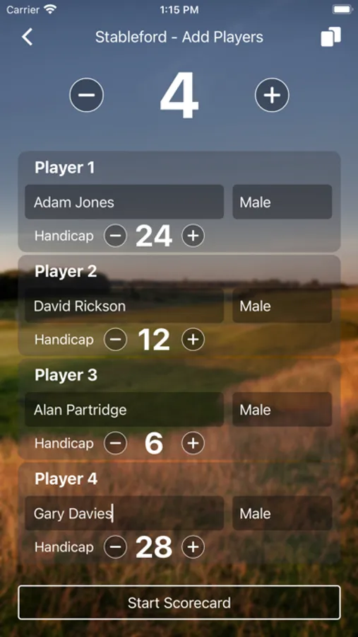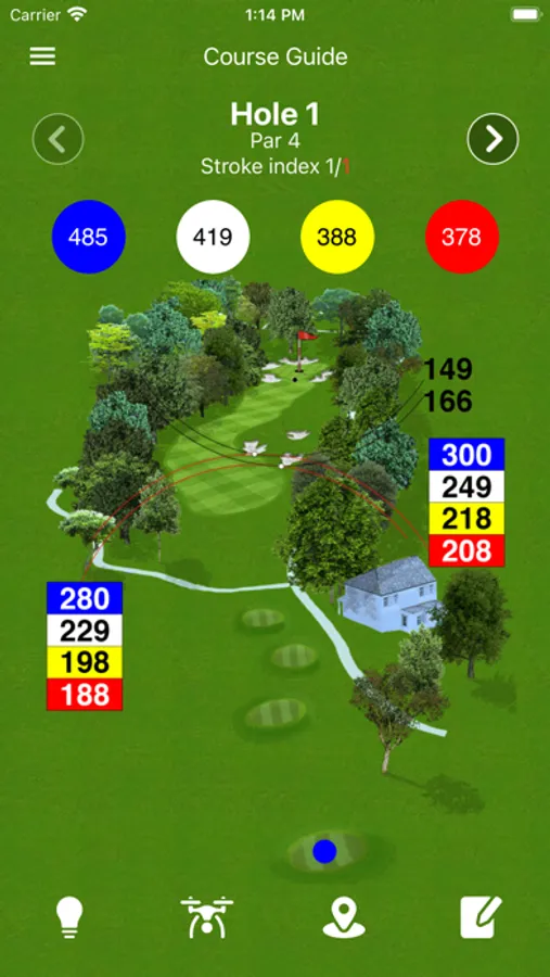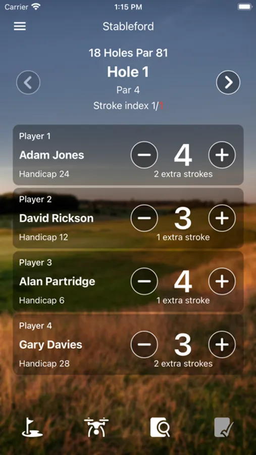• In app Scorecards (up to 4 players!) to calculate Stroke, Stableford and Match Play