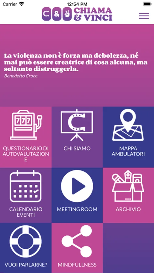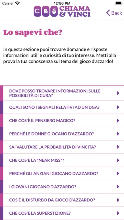 L'App Chiama & Vinci è un progetto che fa capo al Piano Aziendale di attività per il contrasto al Gioco d'Azzardo dell'Azienda Ulss 3 Serenissima promosso dalla Regione Veneto con la Legge Regionale 38/2019. L'App ha l'obiettivo di promuovere gli interventi finalizzati alla prevenzione, al contrasto e alla riduzione dei rischi da gioco d'azzardo e delle problematiche correlate, nonché al trattamento e al recupero delle persone che ne sono dipendenti e al supporto delle loro famiglie.