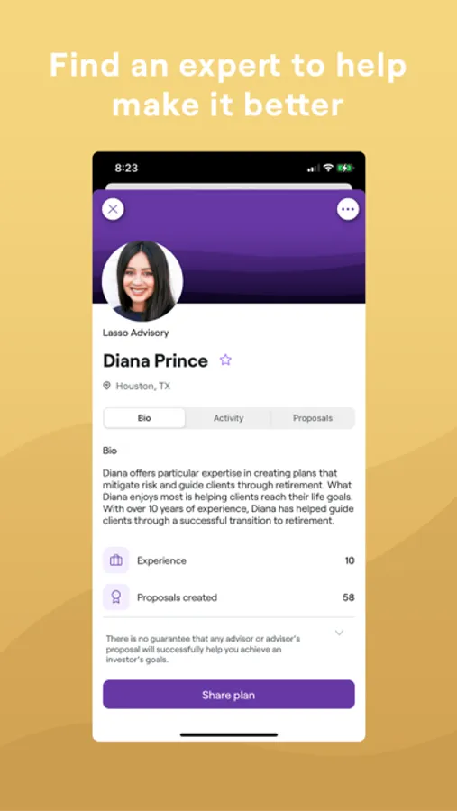 From the minute you sign up, you’re in control of finding advisors who align with who you are. Research as many advisors as you want to make sure you find one who understands your values, risk level and more.