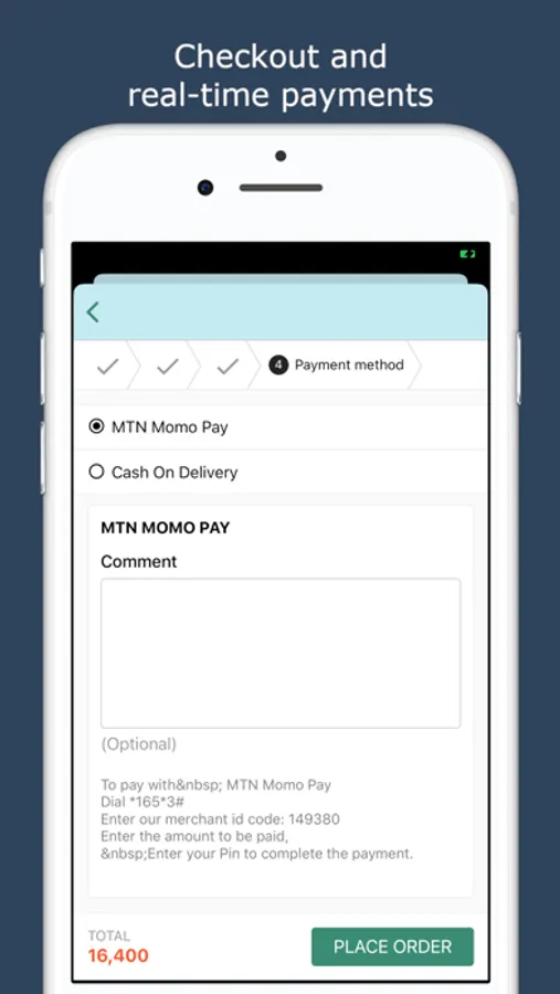 Payment options are made easy, Cash on delivery available, Pay with credit card, Buy using mobile money.