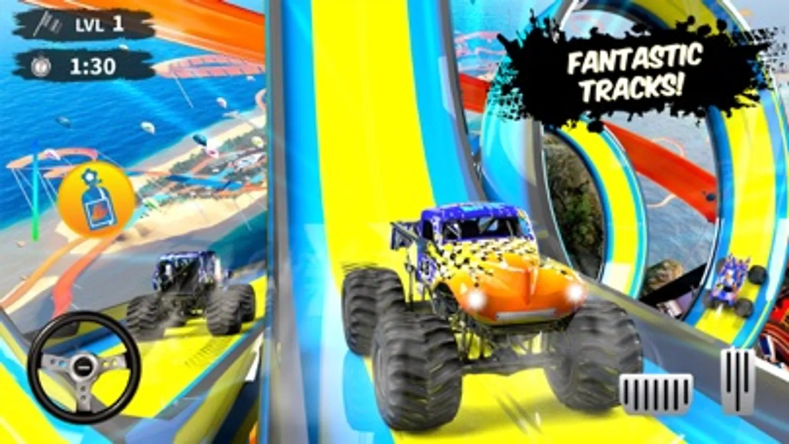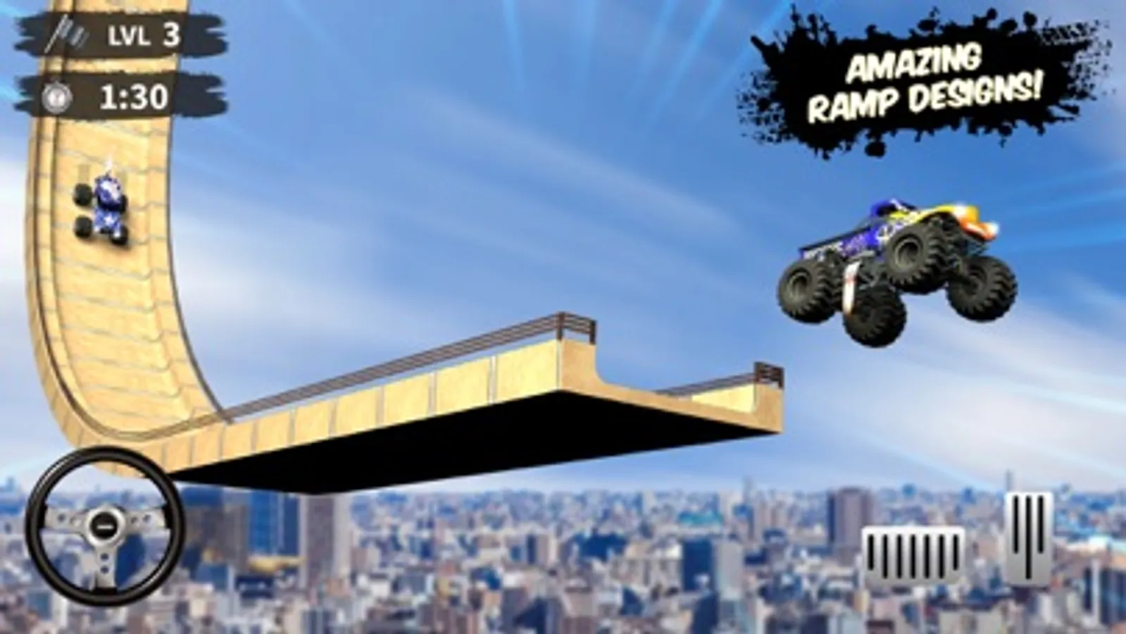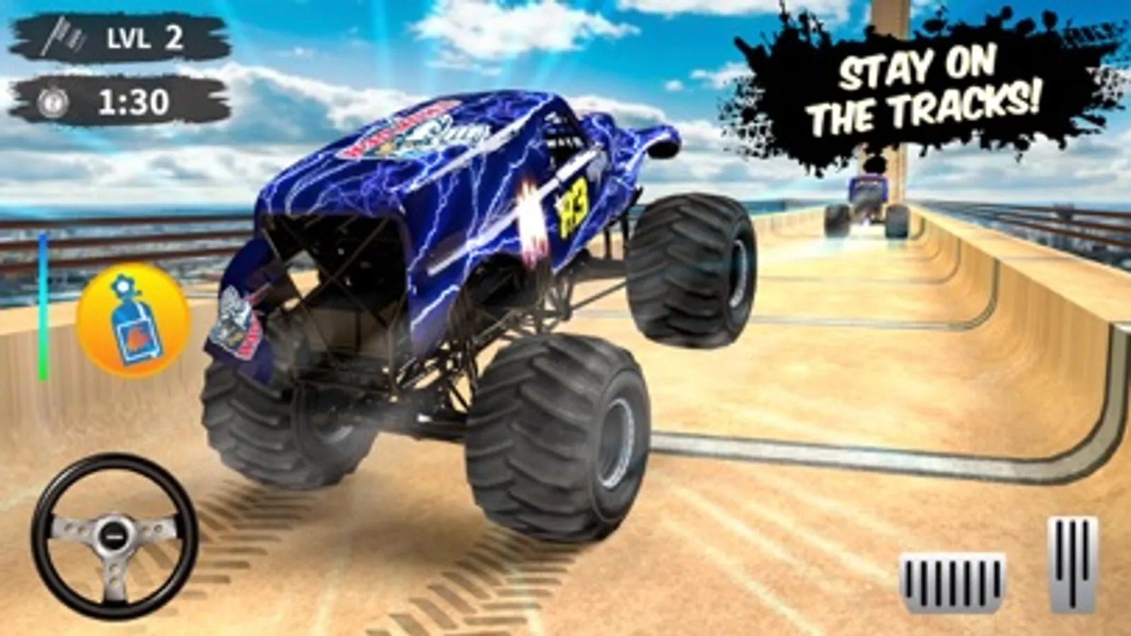 Let's play Monster Truck Games and have the thrill of driving monster truck on a real ramp car jumping impossible tracks. Have you ever heard of hot wheels monster trucks then here you can enjoy driving those trucks on impossible tracks and feel the adrenaline rush in you. Play car games and drive monster truck fast by pushing down the race throttle to its extreme. Hot wheels car games is one of the best four wheeler games drive them and get rewarded by the bonus points of completing the levels. Monster Truck Games have different type of trucks with distinguish features such as high speed, smooth handling and excellent brakes. Modifying monster trucks will have amazing features and you will be able to complete the amazing 3D impossible ramp car jumping levels.