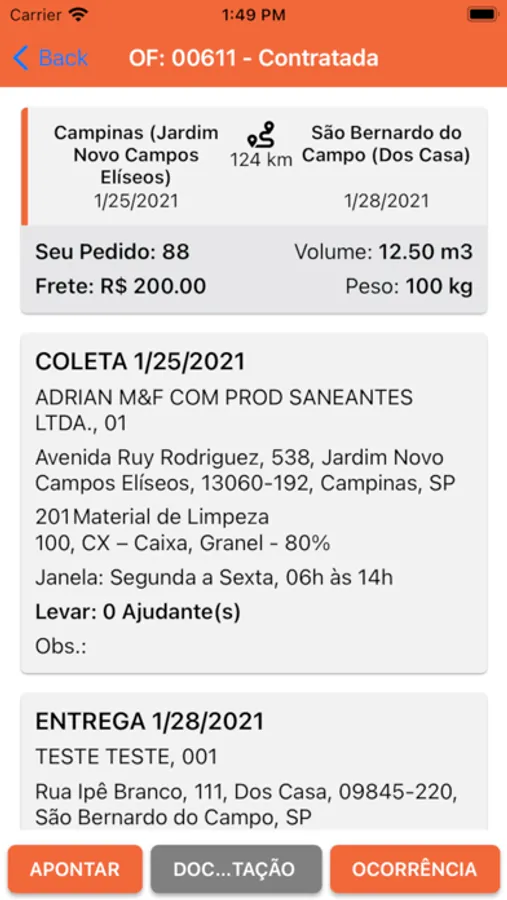 • Acesse toda a documentação de frete pelo App, incluindo instruções para o carregamento