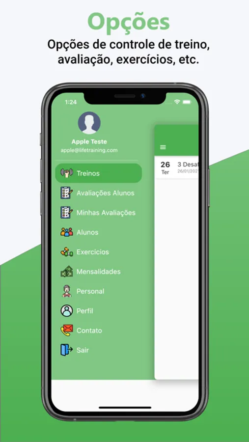 O aplicativo permite ao usuário receber os treinos diários e marcar como finalizados para que seja feito um controle dos treinos realizados; conferir suas avaliações e saber como anda o seu progresso; ter o controle das suas mensalidades.