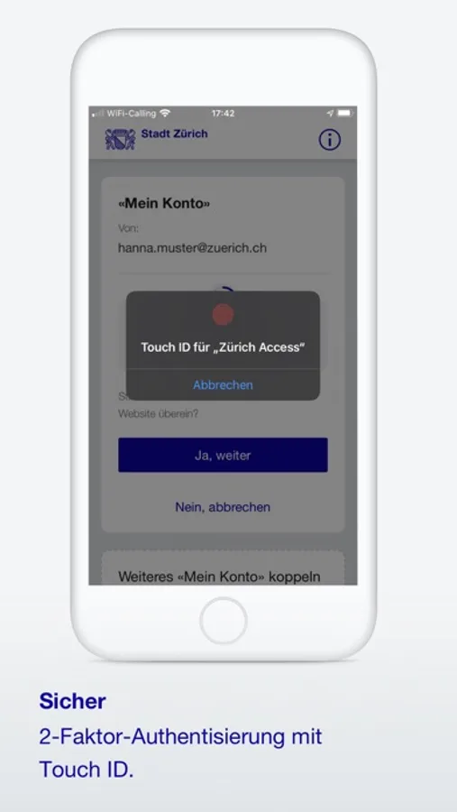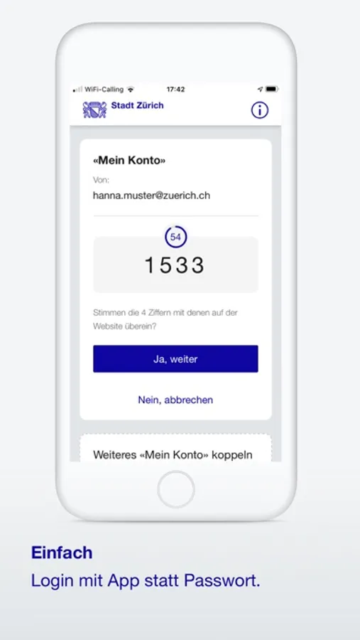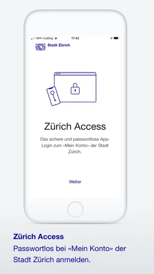 Zürich Access ist das einfache und sichere App-Login für «Mein Konto», dem zentralen Zugang zu den Online-Services der Stadt Zürich.