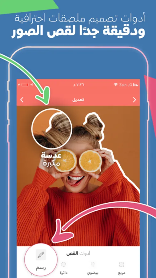 • يمكنك قص الصور باستخدام قلم سهل الاستخدام مع عدسة مكبرة للتأكد من الدقّة