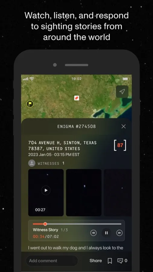 Every day, thousands of people see something they can't explain in the skies. Enigma is the first data, research and community platform for UAP, "Unidentified Anomalous Phenomena," formerly known as UFOs. Enigma is the trusted place to go to share your story and read accounts from other witnesses.