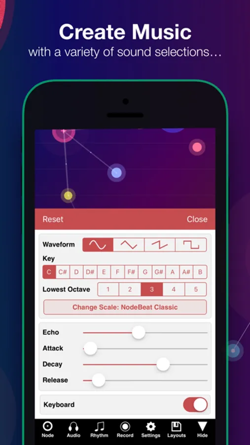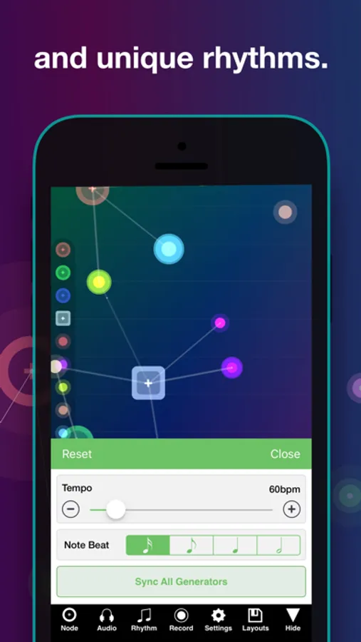 Join over 2 million people and make music with NodeBeat, the intuitive and fun visual music app for all ages. Whether you're 2 or 92, NodeBeat will make you sound like a pro. Create your own music in a matter of minutes or listen to NodeBeat generate its own. Easily share your creations with others or save them for later to show your friends. Discover your musical genius with NodeBeat!
