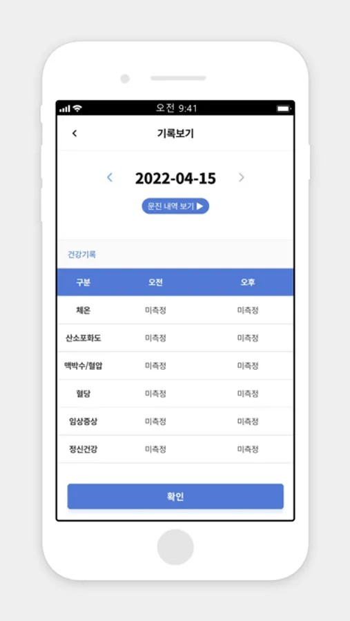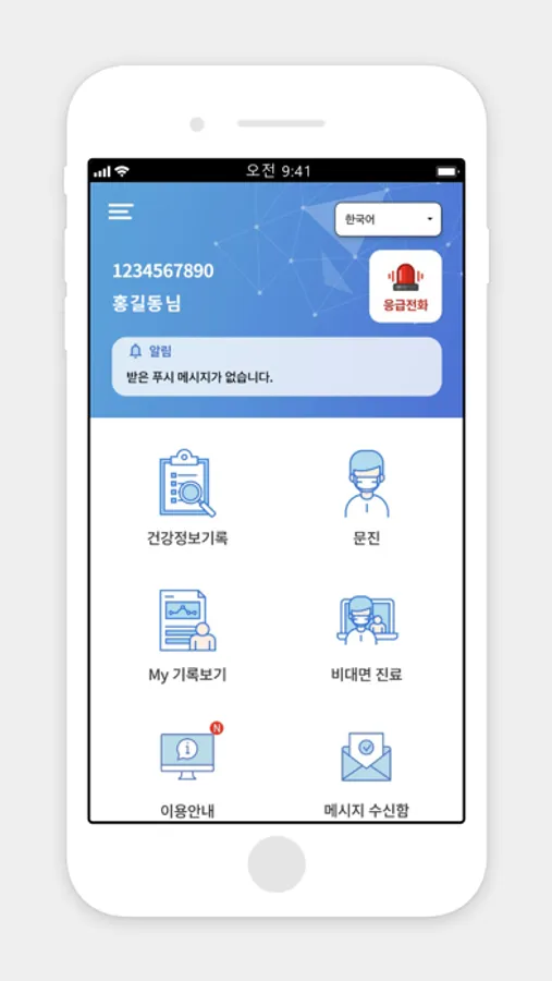 - Health information record: After selecting the health information record icon on the main screen, measure daily biosignals, enter the measured number, and press the record button to transmit.