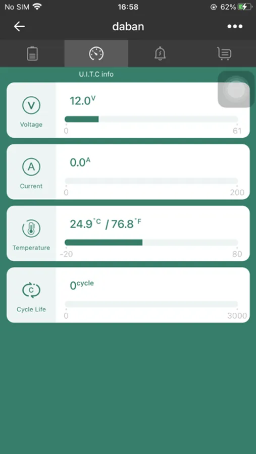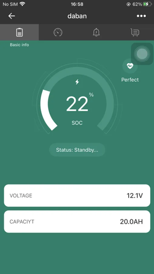 * Displays State Of Charge (SOC) percentage with circle graphic.