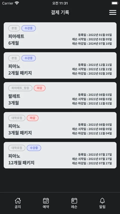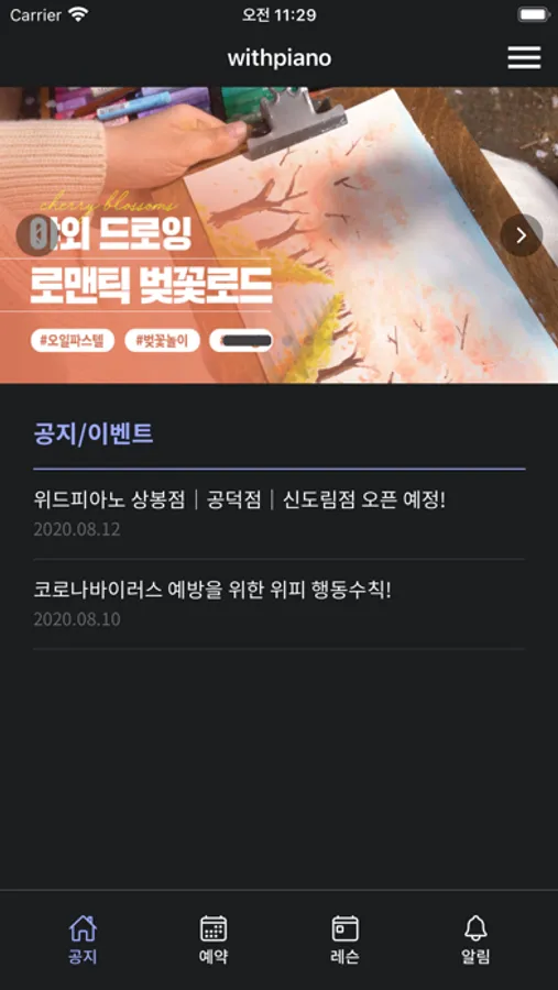어플을 통하여 위드피아노 수강생이 편하게 학원을 이용할 수 있도록 제작