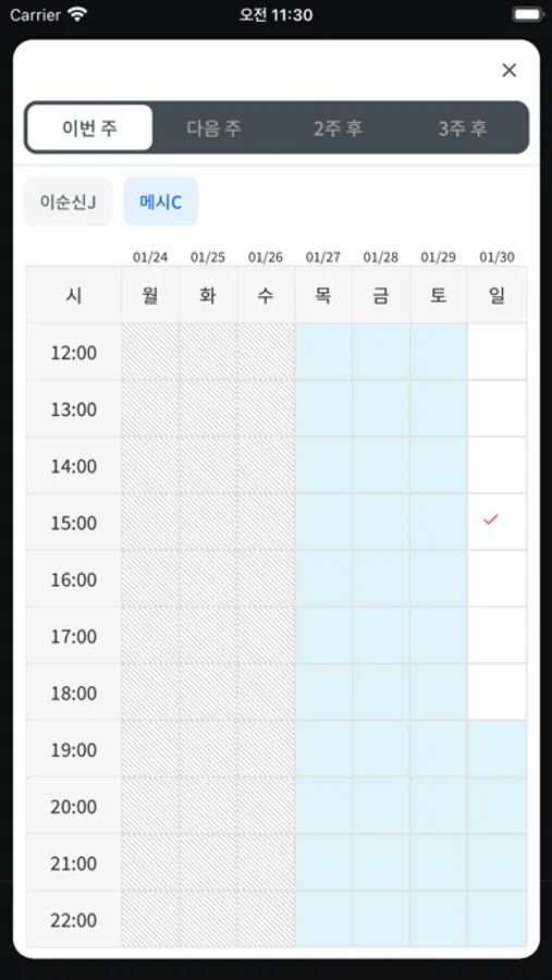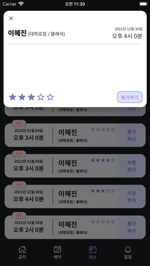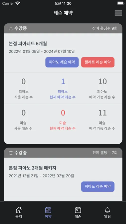 레슨 스케줄을 실시간으로 확인, 예약할 수 있고