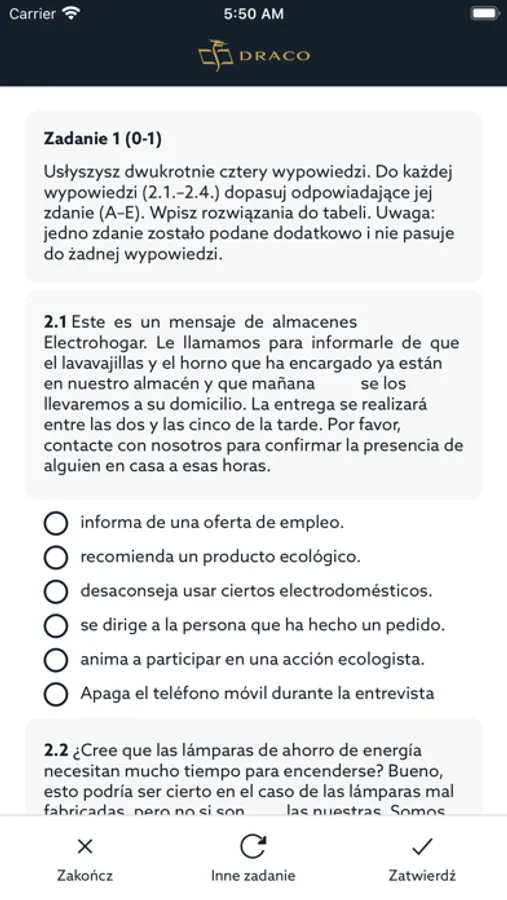 „Nie mam dużo czasu na naukę, więc możliwość rozwiązywania zadań maturalnych w aplikacji wydawnictwa Draco w trakcie podróży autobusem czy tramwajem bardzo mi odpowiada.”