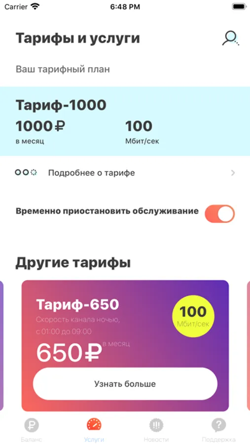 Просматривайте баланс, историю платежей, историю списаний за услуги по вашему договору.
