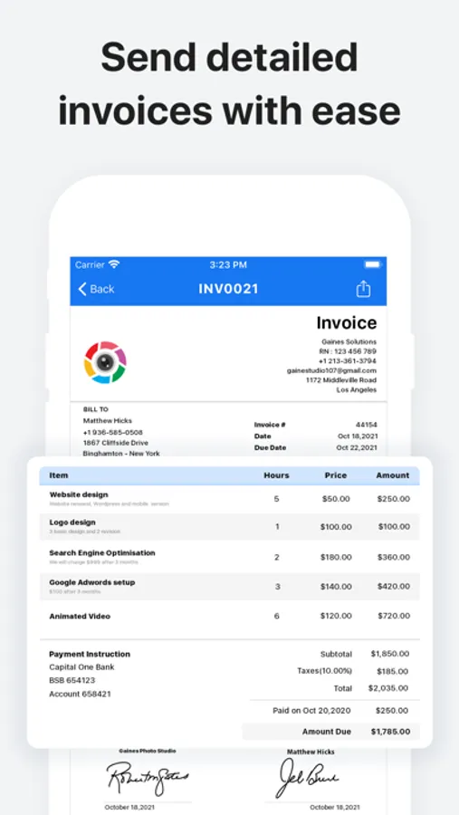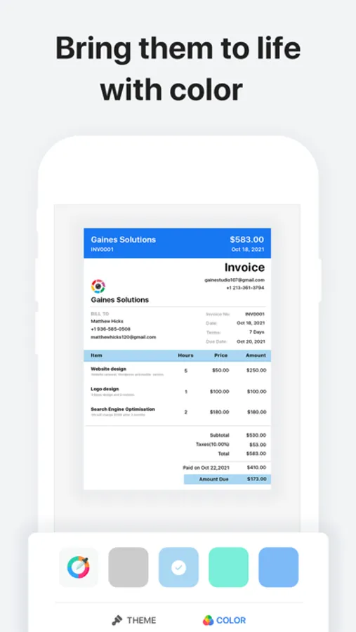 Invoice Create is the easiest way to send professional invoices and estimates to your customers. Perfect for small business owners, contractors or freelancers, Invoice Create is a fast, easy and affordable mobile invoicing solution. Create a professional invoice in seconds and collect payments with ease.