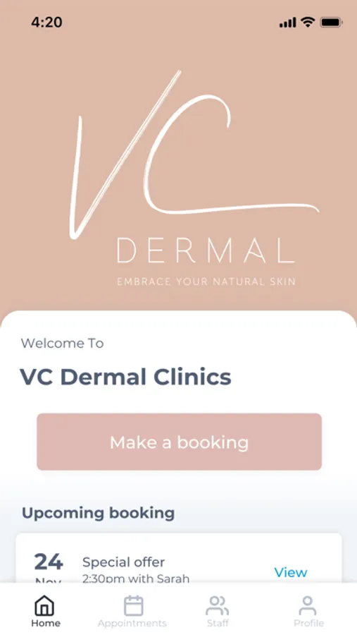 The VC Dermal Clinics app makes booking your appointments and managing your loyalty points even easier. You're just a few taps away from feeling good and looking great!