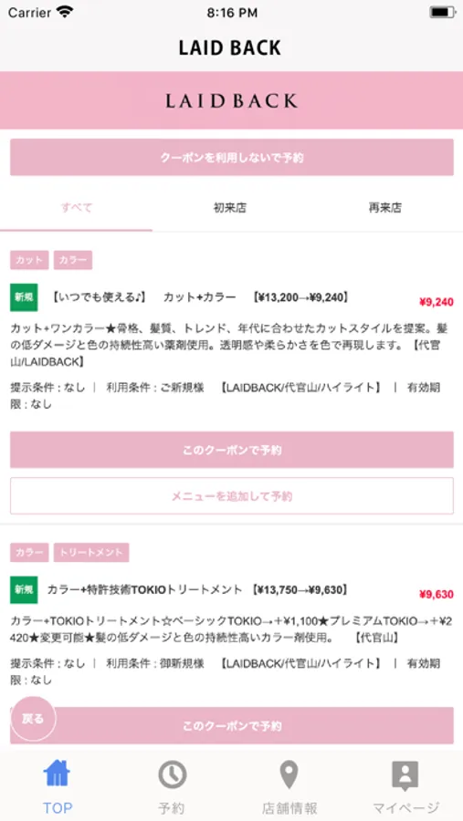 お得なクーポンが配信されます。ネット予約時にクーポン利用での予約も可能なので来店時もスムーズに施術頂けます。