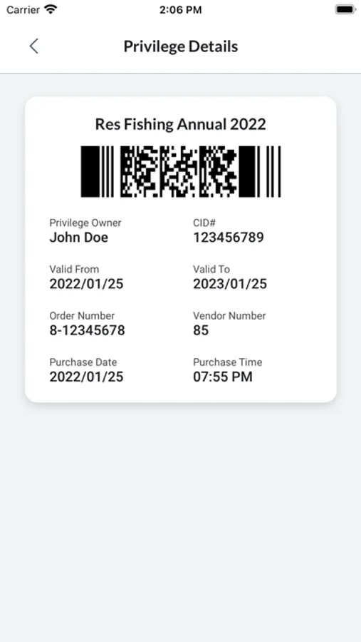 Please note: licenses with carcass tags and passes that must be displayed in a vehicle are currently not supported. Please carry proof of hunter education for all hunting licenses.