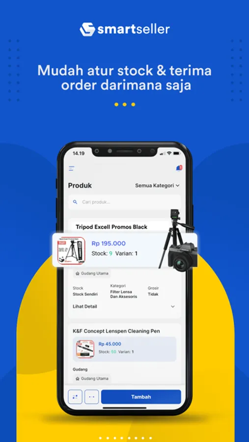 - Dengan sistem inventori SmartSeller, kamu bisa mengatur dan memantau ketersediaan stok produk dengan dukungan multi gudang dan tetap terupdate dimanapun kamu berjualan