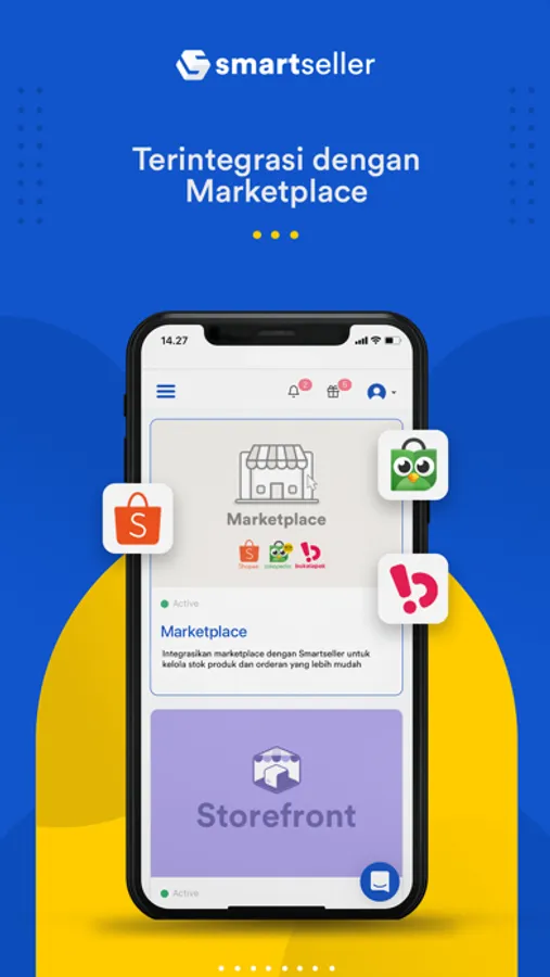 - Manfaatkan fitur powerful integrasi dengan marketplace terbesar di Indonesia untuk mengelola semua produk, stok dan orderan di marketplace langsung dari dashboard SmartSeller.