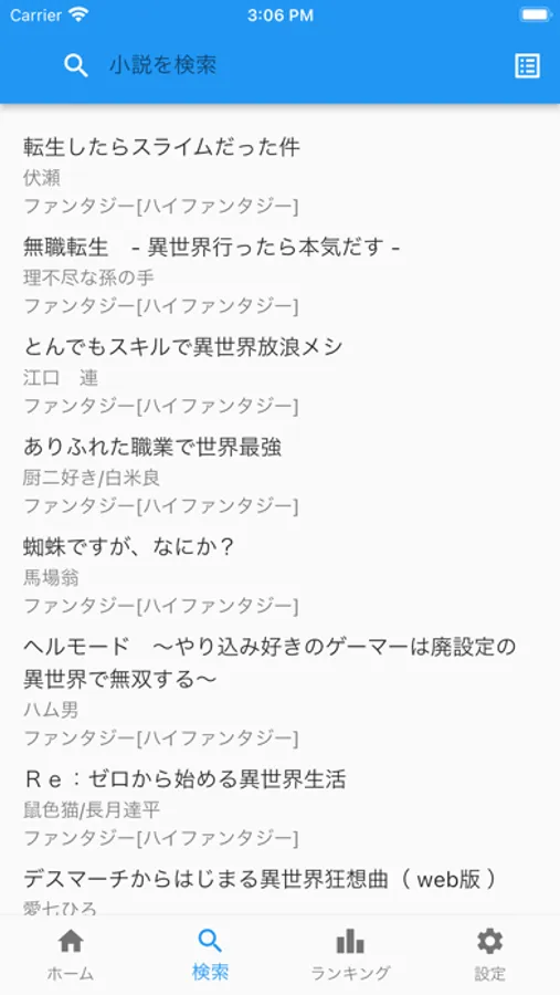 軽さを追求した,小説家になろうのリーダーアプリです。