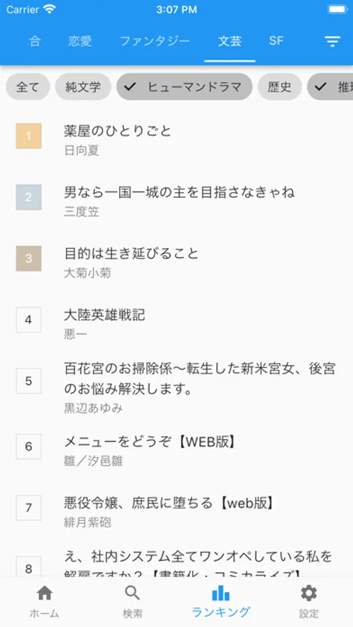 検索条件の細かい指定や、ジャンル別のランキングを閲覧することができます。
