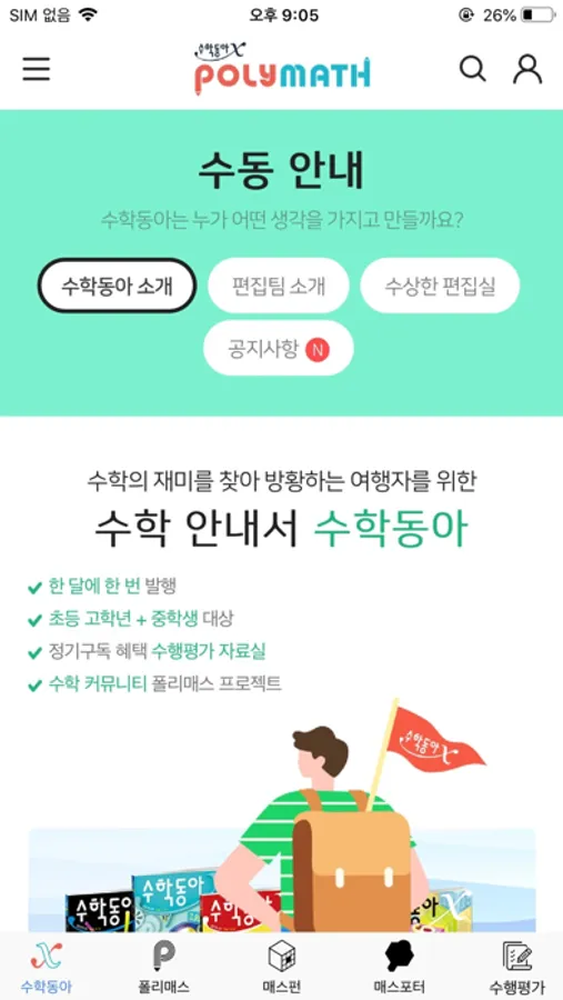 "수학동아 폴리매스"는 동아사이언스에서 발행하는 수학 교양 잡지 수학동아의 애플리케이션입니다. 수학동아가 '수학동아 폴리매스' 애플리케이션에서 제공하는 다양한 수학 체험 활동들을 즐겨보세요.
