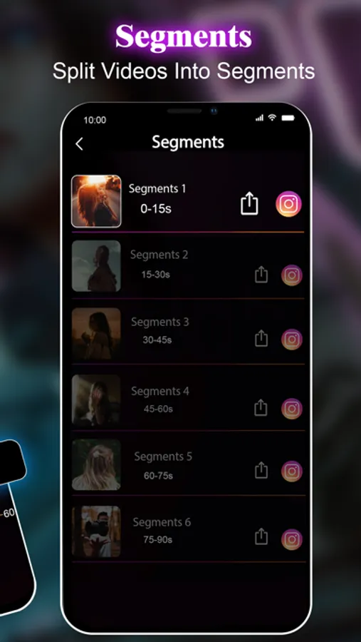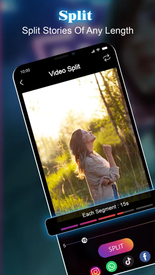 - Share into Parts with Instagram/WhatsApp/Fb/Tik/Snap....